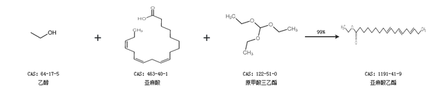 1.通过乙醇、亚麻酸和原甲酸三乙酯合成亚麻酸乙酯,收率约99%;