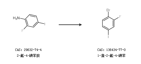 1.通过2-氟-4-碘苯胺合成1-溴-2-氟-4-碘苯