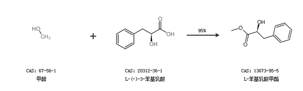 1.通过甲醇和L-(-)-3-苯基乳酸合成L-苯基乳酸甲酯,收率约95%;