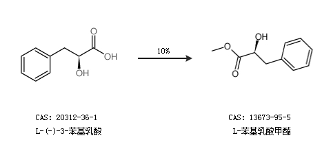 2.通过L-(-)-3-苯基乳酸合成L-苯基乳酸甲酯,收率约10%;