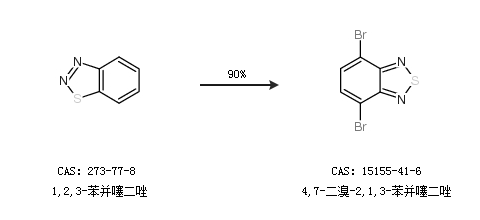 2.通过1,2,3-苯并噻二唑合成4,7-二溴-2,1,3-苯并噻二唑,收率约90%;