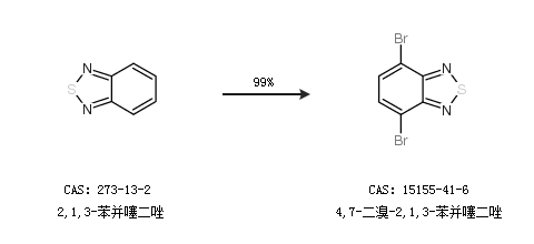 1.通过2,1,3-苯并噻二唑合成4,7-二溴-2,1,3-苯并噻二唑,收率约99%;