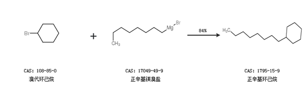 1.通过溴代环己烷和正辛基镁溴盐合成正辛基环己烷,收率约84%;