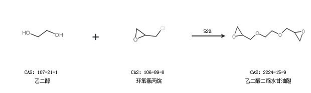 1.通过乙二醇和环氧氯丙烷合成乙二醇二缩水甘油醚,收率约52%;