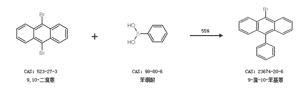 1.通过9,10-二溴蒽和苯硼酸合成9-溴-10-苯基蒽,收率约55%;