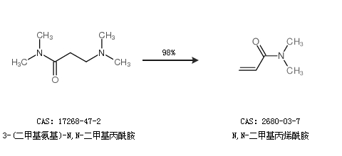 1.通过3-(二甲基氨基)-N,N-二甲基丙酰胺合成N,N-二甲基丙烯酰胺,收率约98%;