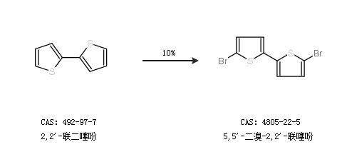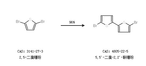 2.通过2,5-二溴噻吩合成5,5''-二溴-2,2''-联噻吩,收率约96%;