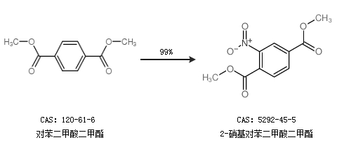 1.通过对苯二甲酸二甲酯合成2-硝基对苯二甲酸二甲酯,收率约99%;