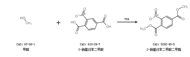2.通过甲醇和2-硝基对苯二甲酸合成2-硝基对苯二甲酸二甲酯,收率约75%;