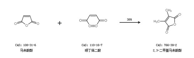 2.通过马来酸酐和顺丁烯二酸合成2,3-二甲基马来酸酐,收率约38%;