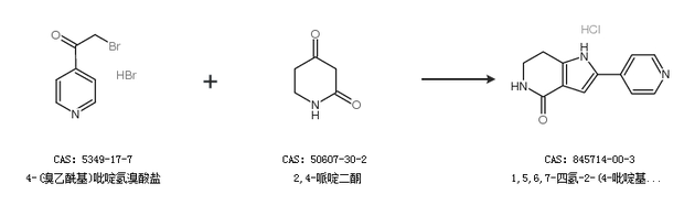 2.通过4-(溴乙酰基)吡啶氢溴酸盐和2,4-哌啶二酮合成1,5,6,7-四氢-2-(4-吡啶基)-4H-吡咯并[3,2-C]吡啶-4-酮
