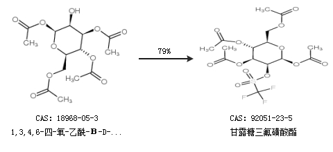 2.通过1,3,4,6-四-氧-乙酰-Β-D-吡啶甘露糖合成甘露糖三氟磺酸酯,收率约79%;