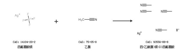 1.通过氧化银合成四(乙酰腈)银(I)四氟硼酸,收率约87%;