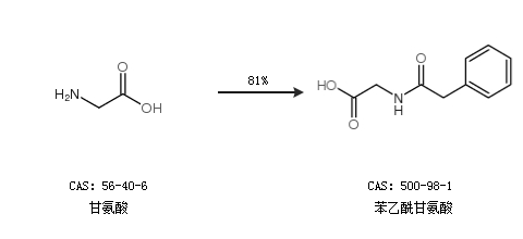 2.通过甘氨酸合成苯乙酰甘氨酸,收率约81%;