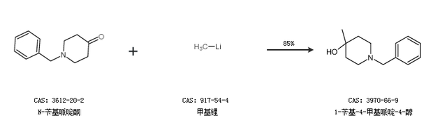 2.通过N-苄基哌啶酮和甲基锂合成1-苄基-4-甲基哌啶-4-醇,收率约85%;