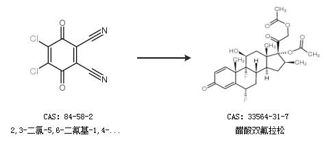 1.通过2,3-二氯-5,6-二氰基-1,4-苯醌合成醋酸双氟拉松