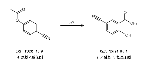 1.通过4-氰基乙酸苯酯合成2-乙酰基-4-氰基苯酚,收率约59%;
