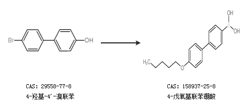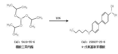 1.通过硼酸三异丙酯合成4-戊氧基联苯硼酸,收率约93%;