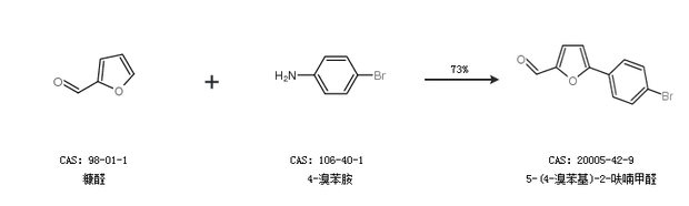 2.通过糠醛和4-溴苯胺合成5-(4-溴苯基)-2-呋喃甲醛,收率约73%;