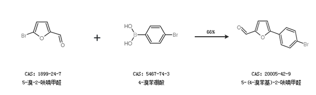 1.通过5-溴-2-呋喃甲醛和4-溴苯硼酸合成5-(4-溴苯基)-2-呋喃甲醛,收率约66%;