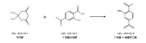 1.通过米氏酸和4-硝基水杨酸合成2-羟基-4-硝基苯乙酮