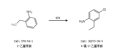 1.通过2-乙基苯胺合成4-氯-2-乙基苯胺,收率约42%;