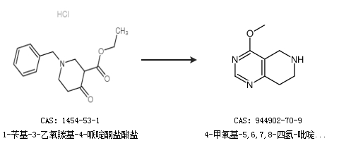 1.通过1-苄基-3-乙氧羰基-4-哌啶酮盐酸盐合成4-甲氧基-5,6,7,8-四氢-吡啶并[4,3-d]嘧啶