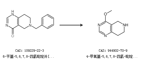 2.通过6-苄基-5,6,7,8-四氢吡啶并[4,3-d]嘧啶-4(3H)-酮合成4-甲氧基-5,6,7,8-四氢-吡啶并[4,3-d]嘧啶