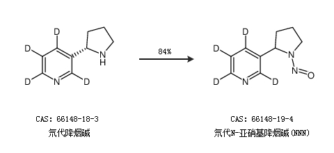 1.通过氘代降烟碱合成氘代N-亚硝基降烟碱(NNN),收率约84%;