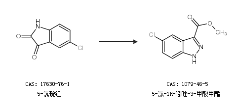 2.通过5-氯靛红合成5-氯-1H-吲唑-3-甲酸甲酯