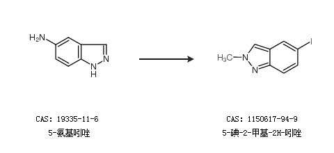 2.通过5-氨基吲唑合成5-碘-2-甲基-2H-吲唑