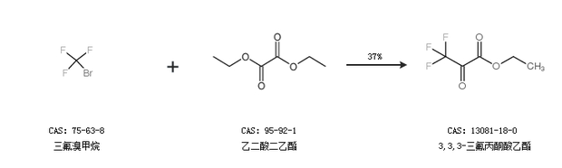 1.通过三氟溴甲烷和乙二酸二乙酯合成3,3,3-三氟丙酮酸乙酯,收率约37%;