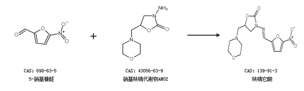 1.通过5-硝基糠醛和硝基呋喃代谢物AMOZ合成呋喃它酮