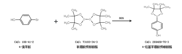 1.通过4-溴苯酚和联硼酸频那醇酯合成4-羟基苯硼酸频哪醇酯,收率约86%;
