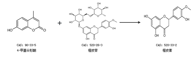 2.通过4-甲基伞形酮和橙皮苷合成橙皮素