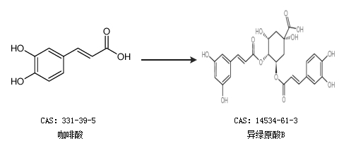 英文别名 IsochlorogenicacidB;ISOCHLOROGENIC ACID B(RG);3,4-Dicaffeoylquinic acid;(1S,3R,4R,5R)-3,4-bis{[(2E)-3-(3,4-dihydroxyphenyl)-1-oxoprop-2-en-1-yl]oxy}-1,5-dihydroxycyclohexanecarboxylic acid;Isochlorogenic acid B(3,4'');4,5-di-O-caffeoylquinic acid;4,5-di-O-trans-caffeoyl-D-quinic acid;4,5-di-O-trans-caffeoylquininc acid;Quinic acid 3,4-di-O-caffeate;3,4-Di-O-caffeoylquinic acid;