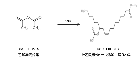2.通过乙酸异丙烯酯合成2-乙酰氧-9-十八烯酸甲酯[R-(Z)-,收率约29%;