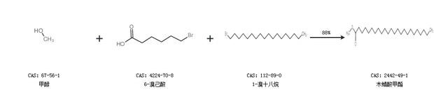 1.通过甲醇、6-溴己酸和1-溴十八烷合成木蜡酸甲酯,收率约88%;