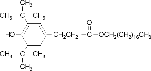 中文别名 3-(3,5-二叔丁基-4-羟基苯基)丙酸正十八烷醇酯;抗氧化剂1076;抗氧剂 1076;3-(3,5-二叔丁基-4-羟苯基)丙酸十八烷酯;十八烷基-3,5-双(1,1-二甲基乙基)-4-羟基苯丙酸酯;十八烷基3-(3,5-二叔丁基-4-羟苯基)丙酸酯;β-(3,5-二叔丁基-4-羟基苯基)丙酸十八醇酯;