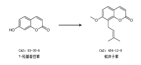 中文别名 欧芹酚甲醚,甲氧基欧芩酚,喔斯脑;王草素;甲氧基欧芹酚;7-甲氧基-8-(3-甲基-2-丁烯基)香豆素;蛇床子提取物;7-甲氧基-8-异戊烯基香豆素;