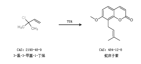 1.通过3-氯-3-甲基-1-丁烯合成蛇床子素,收率约75%;