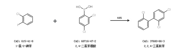 1.通过1-氯-2-碘苯和2,4-二氯苯硼酸合成2,2,4-三氯联苯,收率约44%;