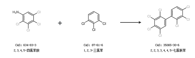 2.通过2,3,4,5-四氯苯胺和1,2,3-三氯苯合成2,2,3,3,4,4,5-七氯联苯
