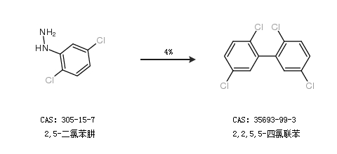 1.通过2,5-二氯苯肼合成2,2,5,5-四氯联苯,收率约4%;
