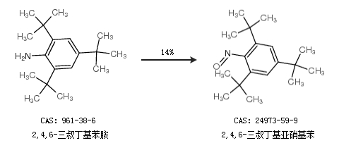 2.通过2,4,6-三叔丁基苯胺合成2,4,6-三叔丁基亚硝基苯,收率约14%;