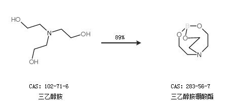 1.通过三乙醇胺合成三乙醇胺硼酸酯,收率约89%;