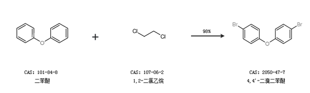 2.通过二苯醚和1,2-二氯乙烷合成4,4''-二溴二苯醚,收率约98%;