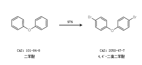1.通过二苯醚合成4,4''-二溴二苯醚,收率约97%;