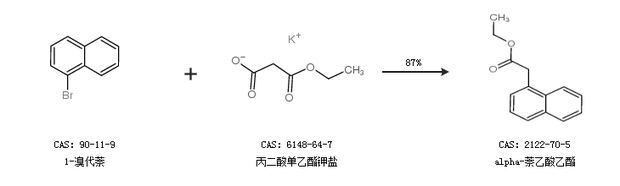 2.通过1-溴代萘和丙二酸单乙酯钾盐合成alpha-萘乙酸乙酯,收率约87%;