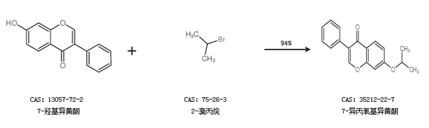 1.通过7-羟基异黄酮和2-溴丙烷合成7-异丙氧基异黄酮,收率约94%;